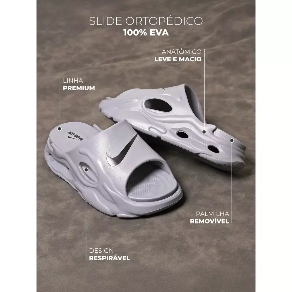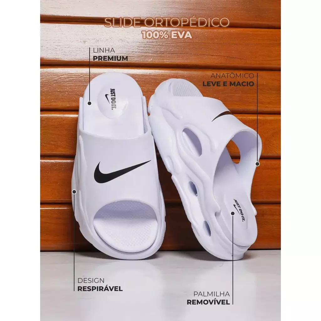 O Chinelo Masculino Nike EVA é a escolha perfeita para quem busca estilo esportivo, conforto e leveza em um só calçado. Produzido em 100% EVA de alta qualidade, ele é anatômico, leve e macio, garantindo a sensação de bem-estar durante todo o dia. Seu design moderno e respirável oferece praticidade, enquanto a palmilha removível proporciona ainda mais conforto e facilidade na hora da limpeza.